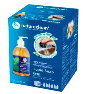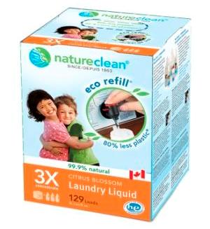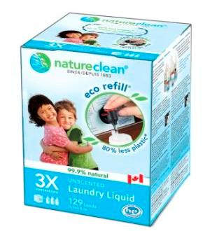 eco refill®Up to 85% less plastic*!!...Sounds unbelievable right?Introducing the eco refill®. This innovative concept reduces the plastic sent to landfills, reduces the greenhouse gas emissions released in production and transportation and reduces your carbon footprint. Not to mention it makes refilling easier. The eco refill® is a bag in a box. You've likely seen it before with wine but this is a first in the household cleaning industry. Forget buying bottle after bottle and throwing them in your blue box, this new concept allows you to keep your original bottle, or just the cap, and keep refilling it. The outside carton is unbleached and fully recyclable. We're in the process of working through a program to recycle the bag, so feel free to ship the bag back to us. Our intention is to be able to ground up the plastic into patio furniture, etc. Please return the bag and spout; it must be cleaned out and dried (you'll have to cut the bag to do this). Read what people are saying about the eco refill®, click here.Currently the eco refill® is available in 6 products (click on them to learn more). NEW ECO REFILLS! - Lavender Laundry Liquid eco refill®3L - saves over 82% plastic! - Unscented Liquid Soap eco refill®3L - saves over 85% plastic!